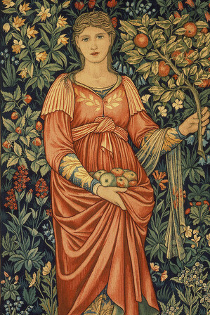 The beautiful image featured in this blog is a William Morris tapestry, featuring the Goddess Pomona.