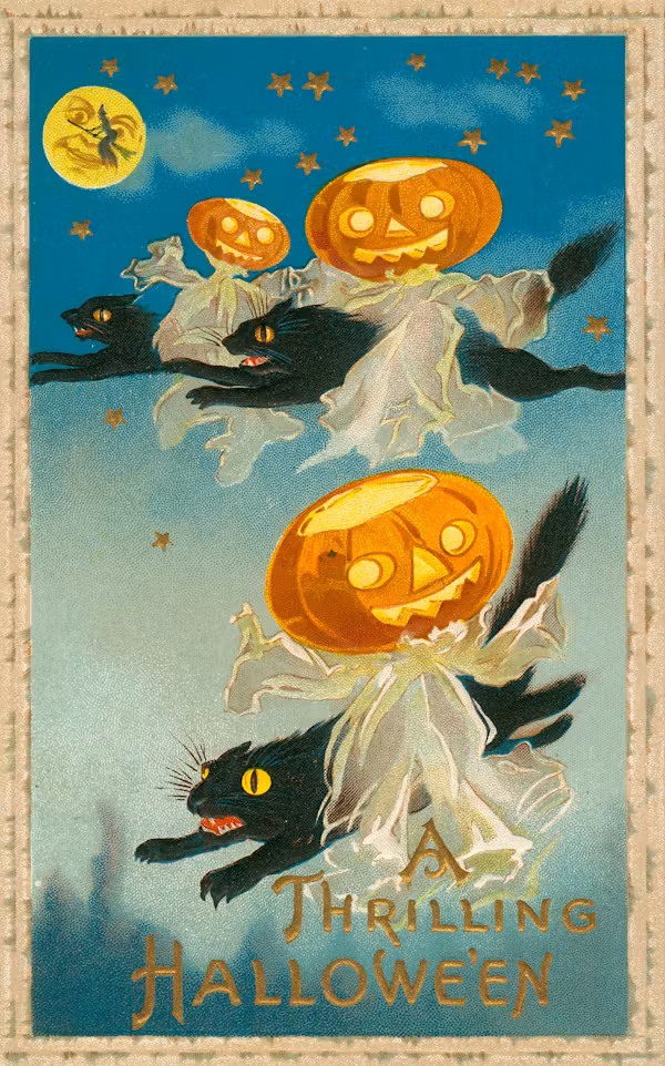 The gorgeous image featured in this blog is from a vintage Halloween postcard, first printed c. 1900–1920